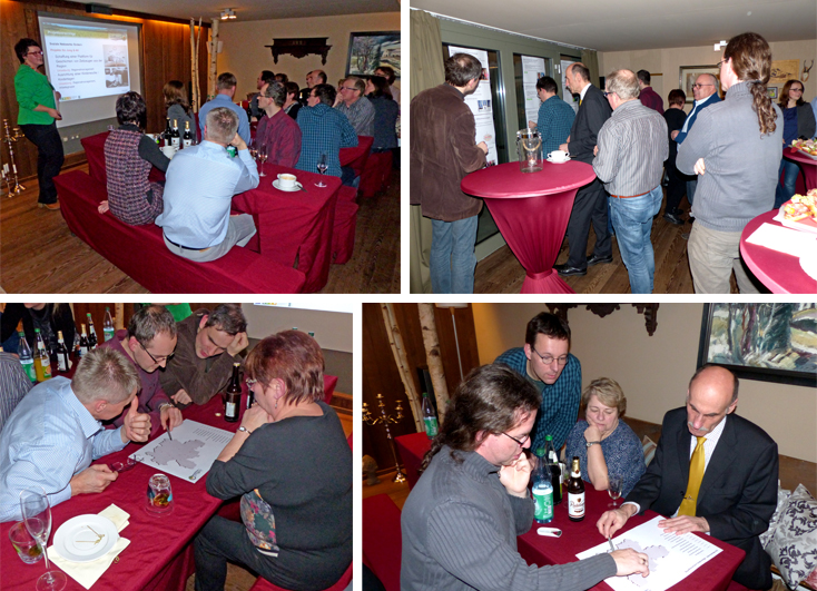 Der zweite Teil der Veranstaltung galt dem „Kennenlernen“ der Vereinsmitglieder. Durch die Erweiterung des Vereins Westlausitz im vergangenen Jahr sind viele neue Mitglieder an dessen Arbeit beteiligt. Durch ein kleines „Westlausitz-Quiz“ wurden dabei interessante aber auch lustige Fakten zu den Vereinsmitgliedern und dem Regionalmanagement abgefragt. Wer ist das jüngste, wer ist das älteste Vereinsmitglied? Wer ist aktiv ein einem Verein (außer dem Westlausitz e.V.) tätig? Dies waren nur zwei der Fragen, über welche sich die Vereinsmitglieder in kleinen Gruppen austauschen sollten. Besonders knifflig wurde es, als in einer Blanko-Westlausitz-Karte (d.h. es war nur der Umriss der Gebietskulisse der Westlausitz aufgezeichnet) verschiedene Sehenswürdigkeiten platziert werden mussten. Alle Gruppen bewiesen an dieser Stelle, dass sie sich in der Westlausitz bestens auskennen.