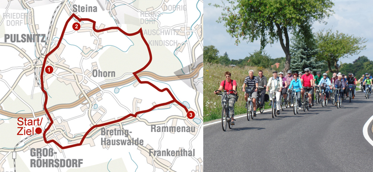 Start und Ziel der ca. 30 Kilometer langen Radtour ist der Bahnhof in Großröhrsdorf. Beginn der Tour ist um 10:00 Uhr, voraussichtliches Ende gegen 15:30 Uhr.