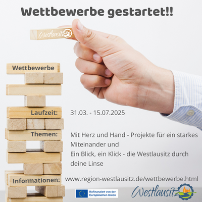 Alle Informationen zu den beiden Wettbewerben sowie die Möglichkeit, Projekte und Fotos einzureichen, gibt es ab sofort bis zum 15.07.2025 www.region-westlausitz.de/wettbewerbe.html. Fragen zum Wettbewerb beantwortet Frau Retzmann vom Regionalmanagement (retzmann@region-westlausitz.de, Tel. 03528 41961039).