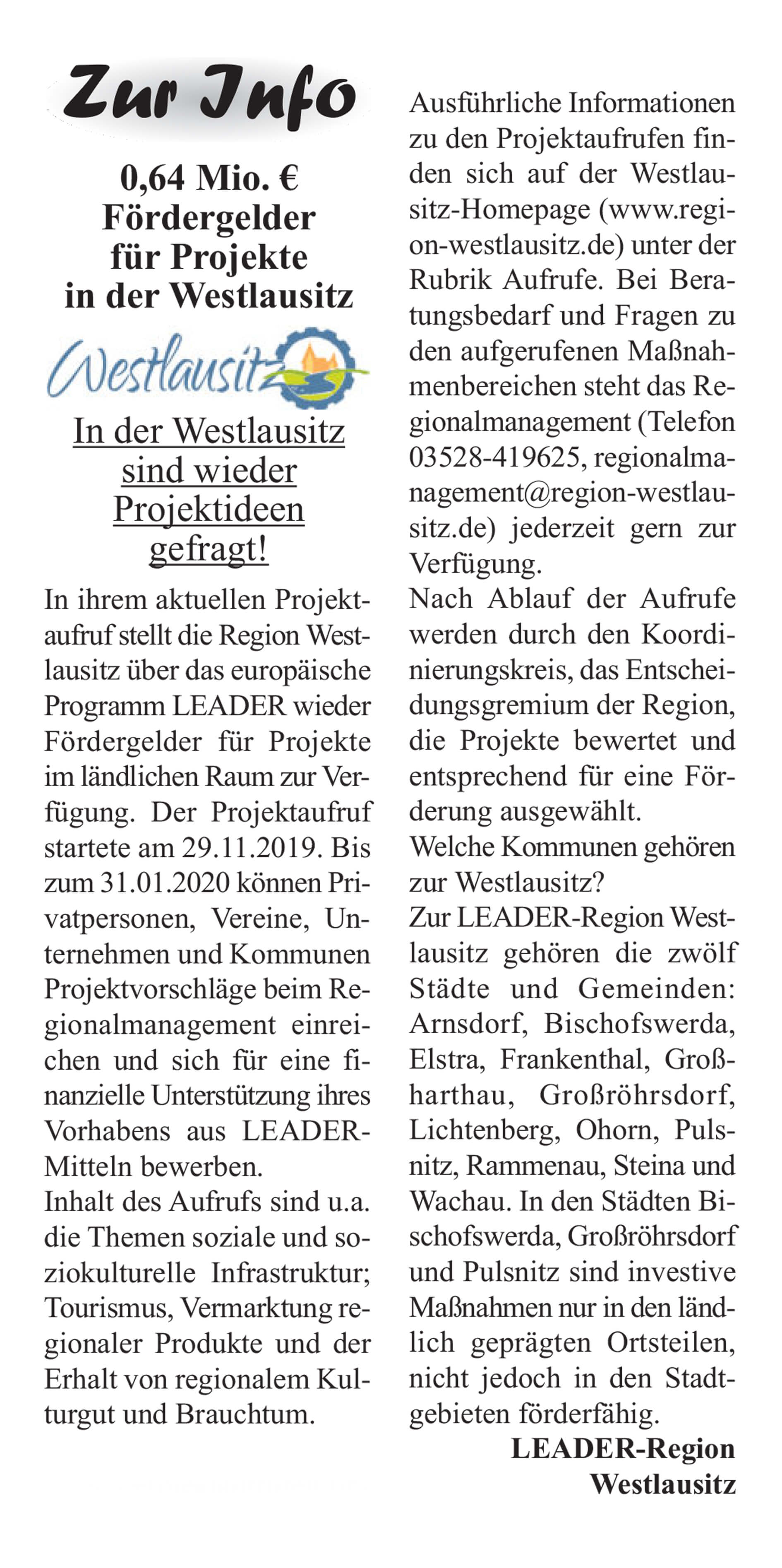 0,64 Mio. € Fördergelder für Projekte in der Westlausitz