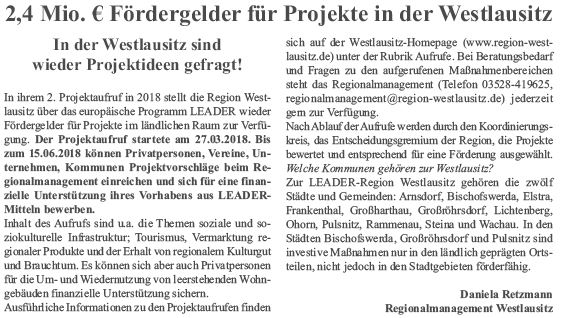 2,4 Mio. € Fördergelder für Projekte in der Westlausitz