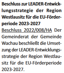 Beschluss zur LEADER-Entwicklungsstrategie der Westlausitz für die EU-Förderperiode 2023-2027