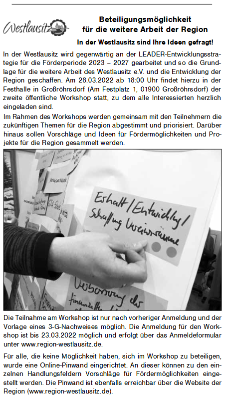 Beteiligungsmöglichkeit für die weitere Arbeit der Region