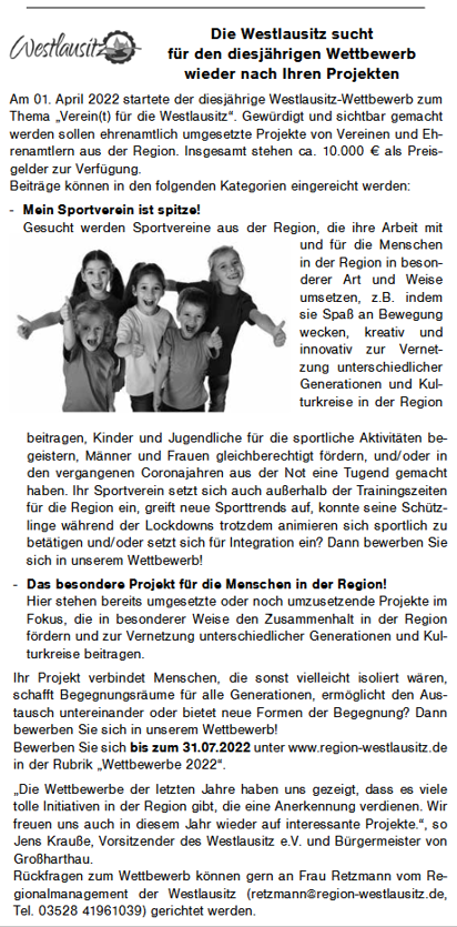 Die Westlausitz sucht für den diesjährigen Wettbewerb wieder nach Ihren Projekten