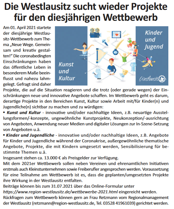 Die Westlausitz sucht wieder Projekte für den diesjährigen Wettbewerb