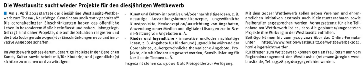 Die Westlausitz sucht wieder Projekte für den diesjährigen Wettbewerb