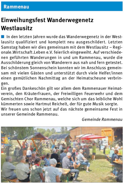 Einweihungsfeier Wanderwegenetz Westlausitz