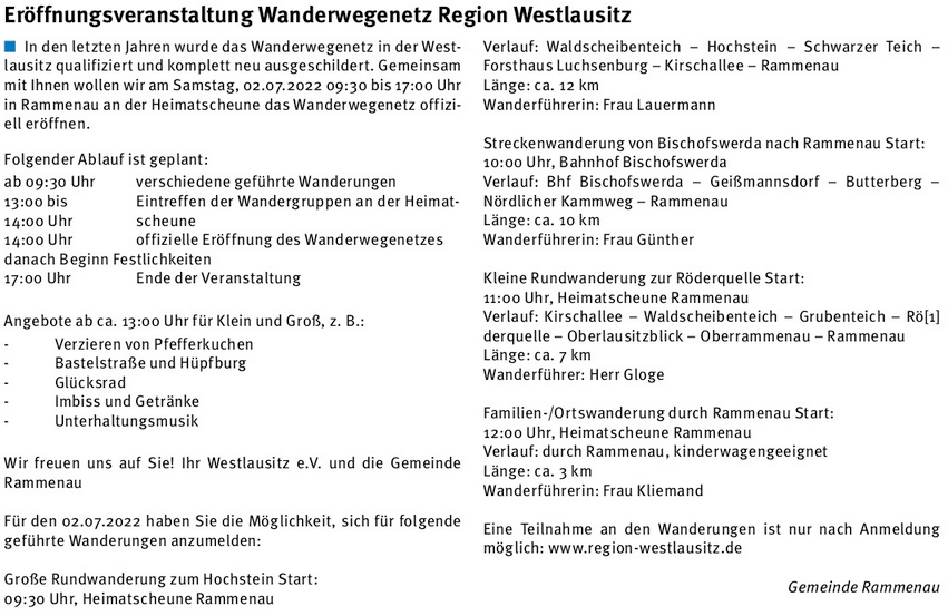 Eröffnungsveranstaltung Wanderwegenetz Region Westlausitz