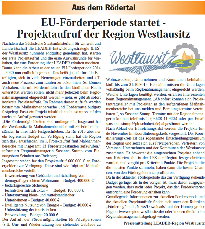 EU-Förderperiode startet - Projektaufruf der Region Westlausitz