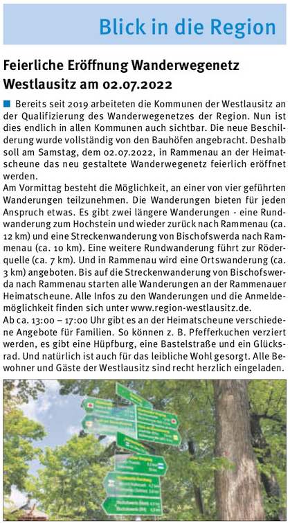 Feierliche Eröffnung Wanderwegenetz Westlausitz am 02.07.2022