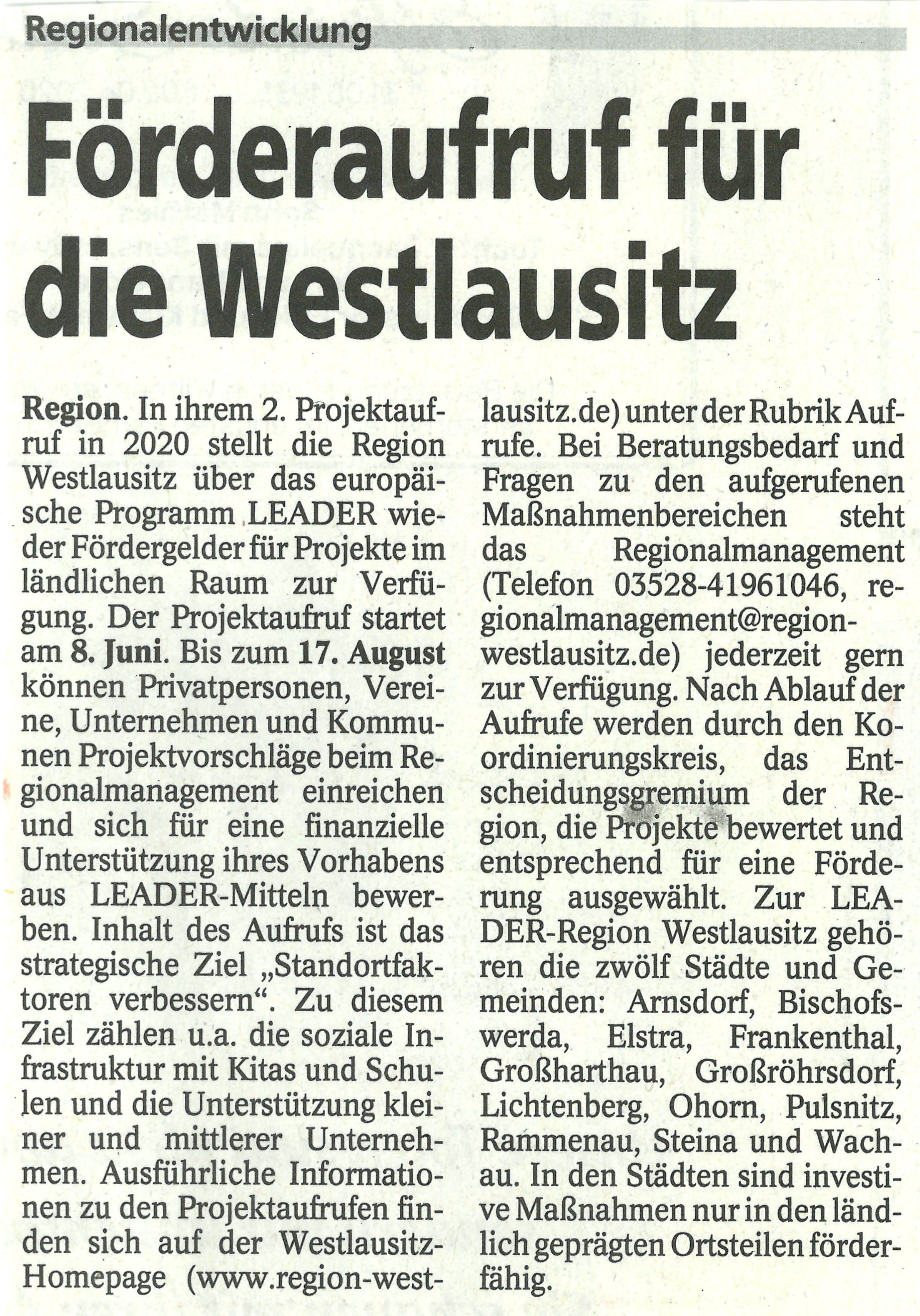 Förderaufruf für die Westlausitz