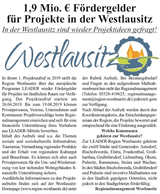 Fördergelder für Projekte in der Westlausitz