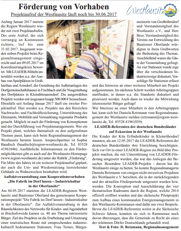 Förderung von Vorhaben - Projektaufruf läuft bis zum 30.06.2017