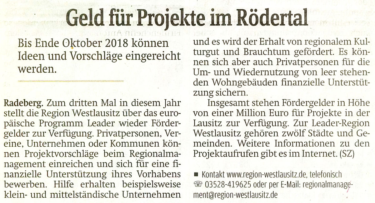 Geld für Projekte im Rödertal
