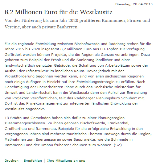 8,2 Mio Euro für die Westlausitz