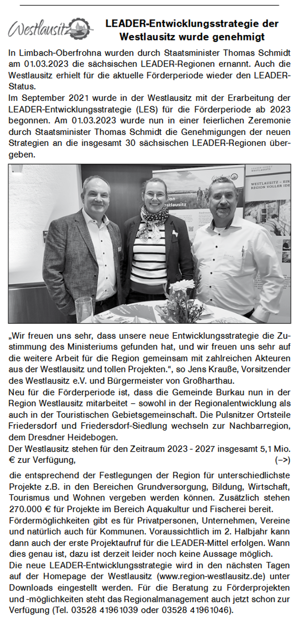 LEADER-Entwicklungsstrategie der Westlausitz wurde genehmigt