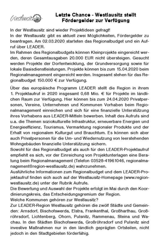 Letzte Chance - Westlausitz stellt Fördergelder zur Verfügung
