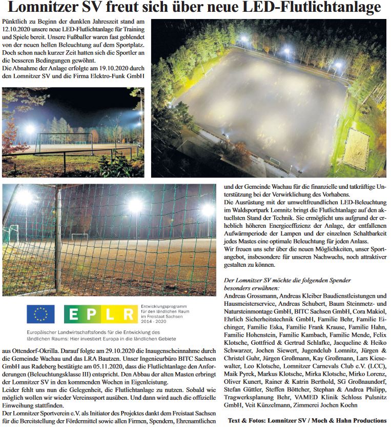 Lomnitzer SV freut sich über neue LED-Flutlichtanlage