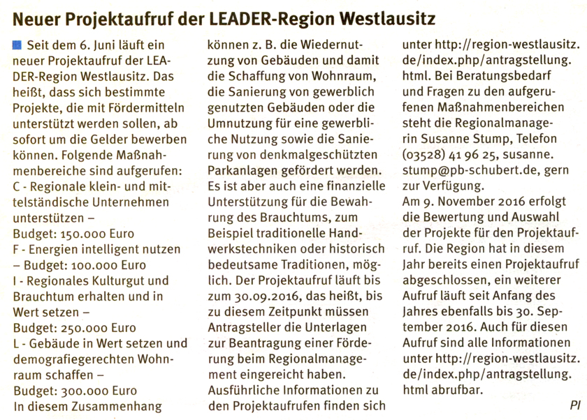 Neuer Projektaufruf der LEADER-Region Westlausitz