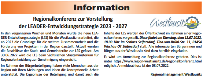Regionalkonferenz zur Vorstellung der LEADER-Entwicklungsstrategie 2023-2027