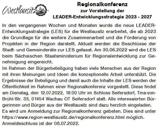 Regionalkonferenz zur Vorstellung der LEADER-Entwicklungsstrategie 2023-2027