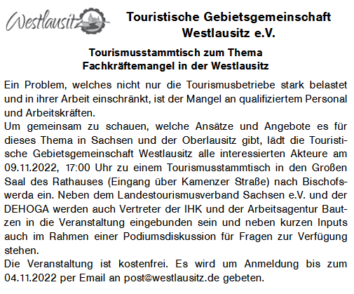 Tourismusstammtisch zum Thema Fachkräftemangel in der Westlausitz