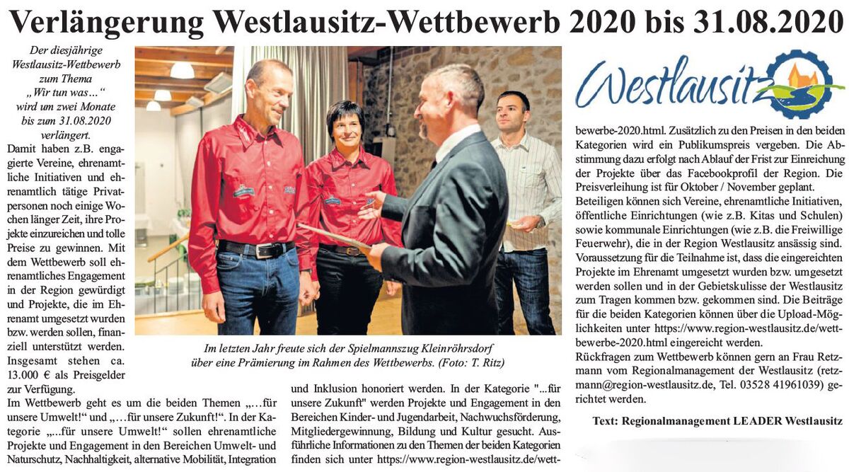 Verlängerung Westlausitz-Wettbewerb 2020 bis zum 31.08.2020
