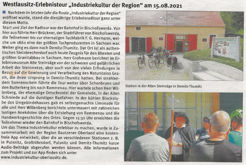 Westlausitz-Erlebnistour "Industriekultur der Region" am 15.08.2021