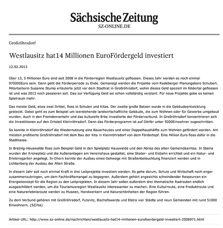 Westlausitz hat 14 Millionen Euro Fördergeld investiert