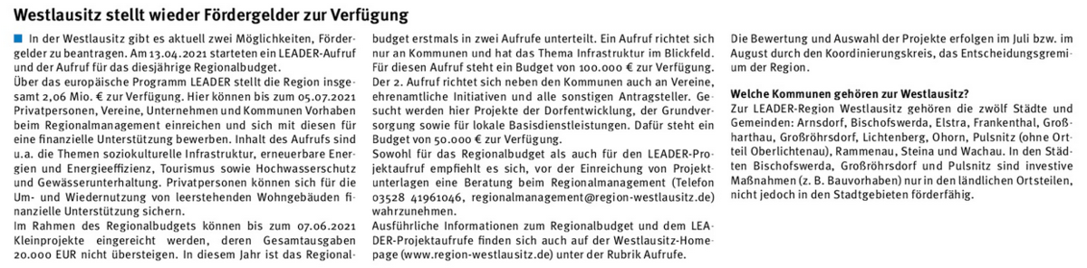 Westlausitz stellt wieder Fördergelder zur Verfügung
