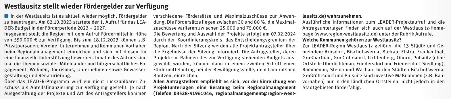 Westlausitz stellt wieder Fördergelder zur Verfügung