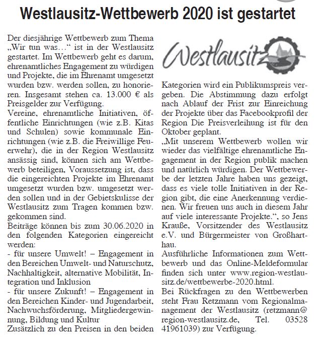 Westlausitz-Wettbewerb 2020 ist gestartet