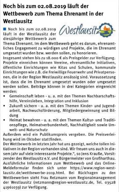 Wettbewerb zum Thema Ehrenamt in der Westlausitz