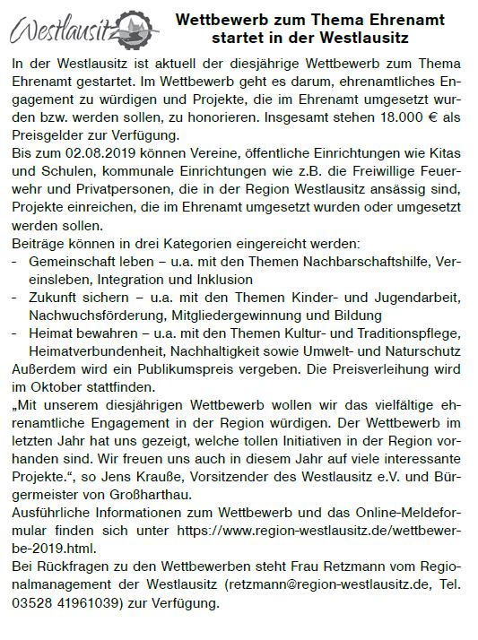 Wettbewerb zum Thema Ehrenamt startet in der Westlausitz