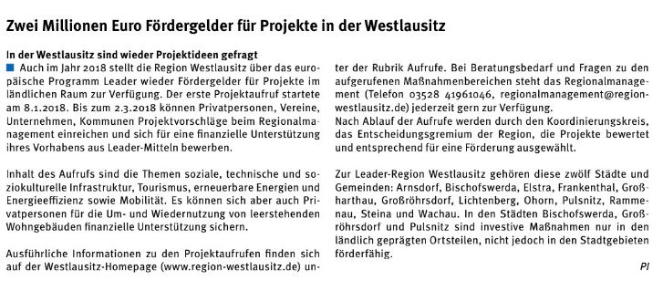 Zwei Millionen Euro Fördergelder für Projekte in der Westlausitz