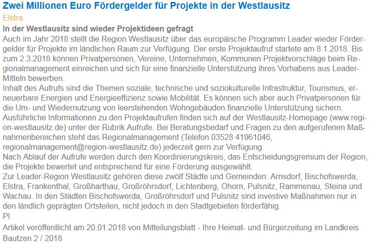 Zwei Millionen Euro Fördergelder für Projekte in der Westlausitz