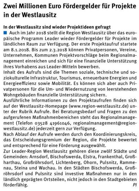 Zwei Millionen Euro Fördergelder für Projekte in der Westlausitz