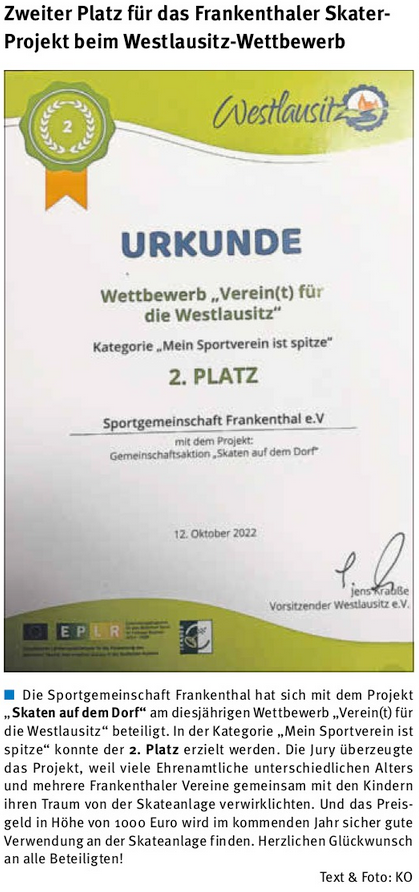 Zweiter Platz für das Frankenthaler Skater-Projekt beim Westlausitz-Wettbewerb